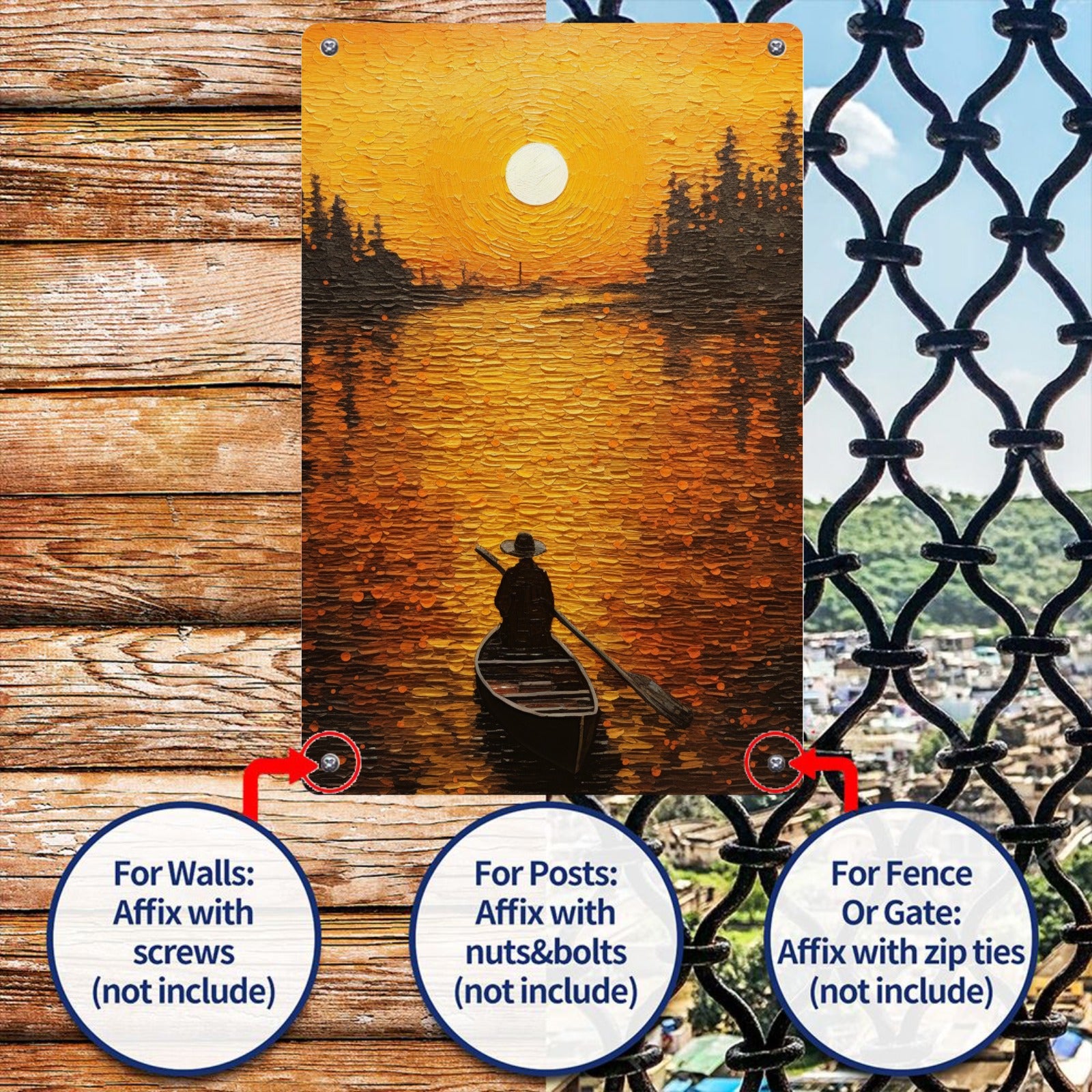 Sunset 8" x 12" Iron Painting Style Metal Tin Plate