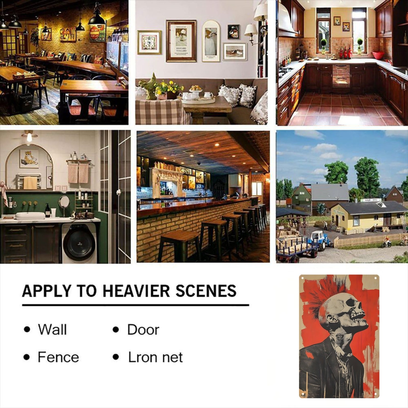 8" x 12" punk rock skull style metal tin plate painting, durable, wear-resistant and rust-resistant, suitable for garage, home, bar, club, farm decoration, a good gift