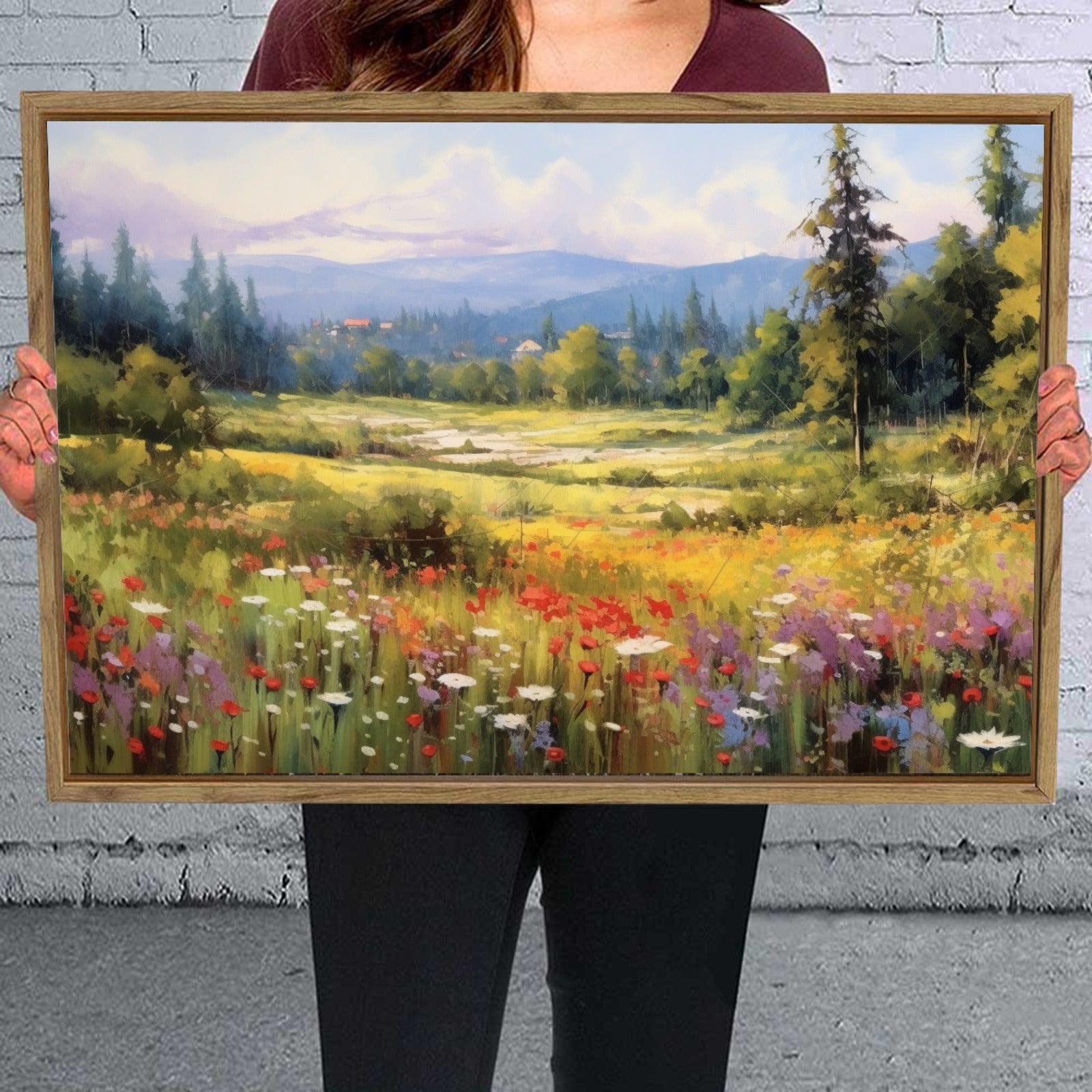 Forest Framed Canvas Painting for Wall 24x16 inches