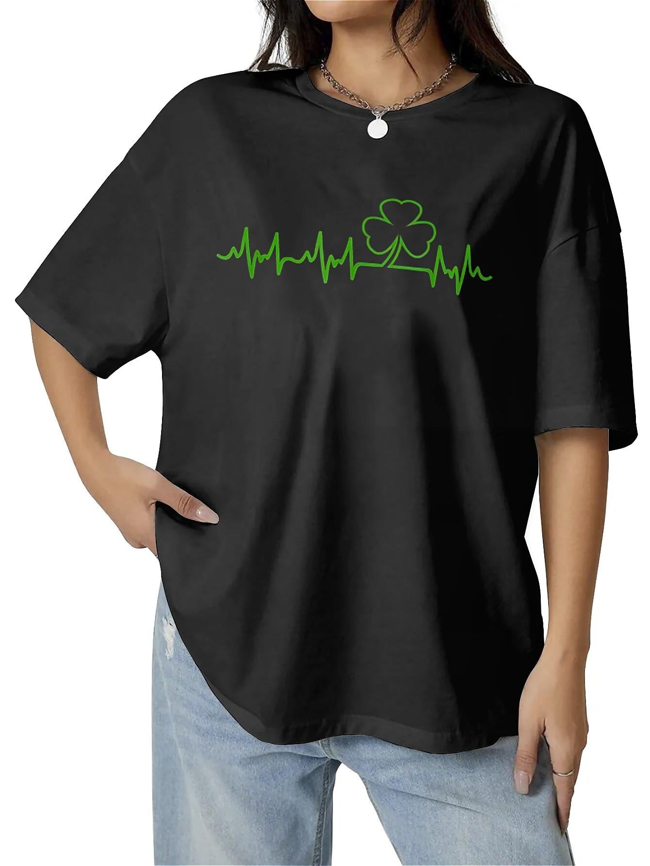 Saint Serenade print, summer style short sleeve, white round neck loose cotton T-shirt, soft material, suitable for daily wear